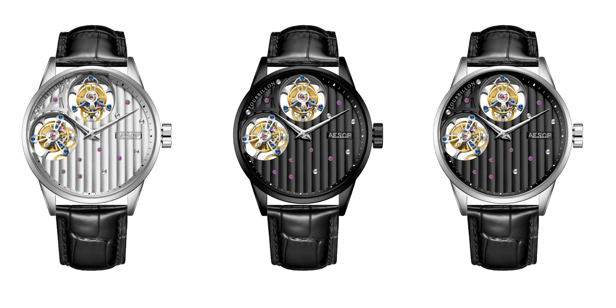 AESOP New Double Tourbillon Movement Mechanical Watches For Men- Male Skeleton Wrist Watch with Luxury Waterproof Sapphire Mirror Lens.