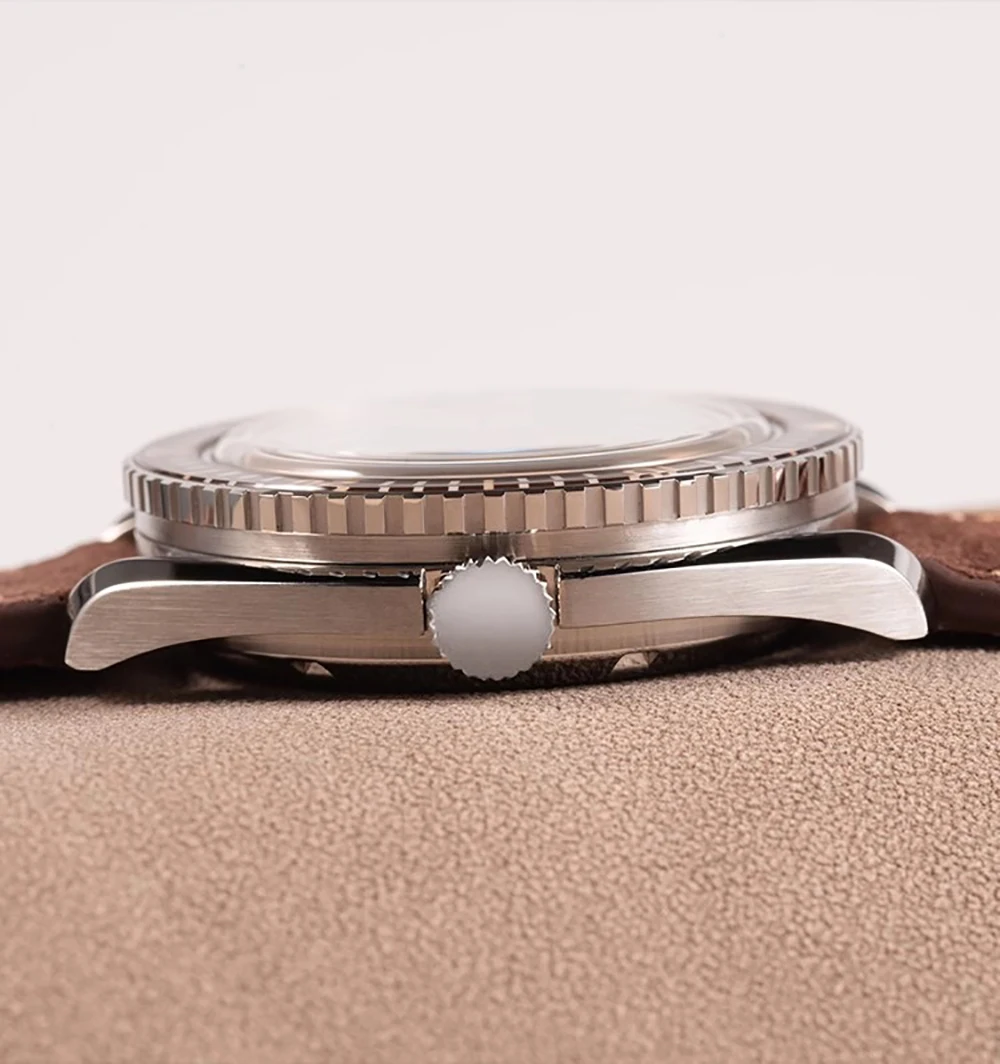 Hruodland Retro Sport Men`s Watches- NH35 Automatic Mechanical Stainless Steel Brown Leather Diving Wristwatch for Men. - brown