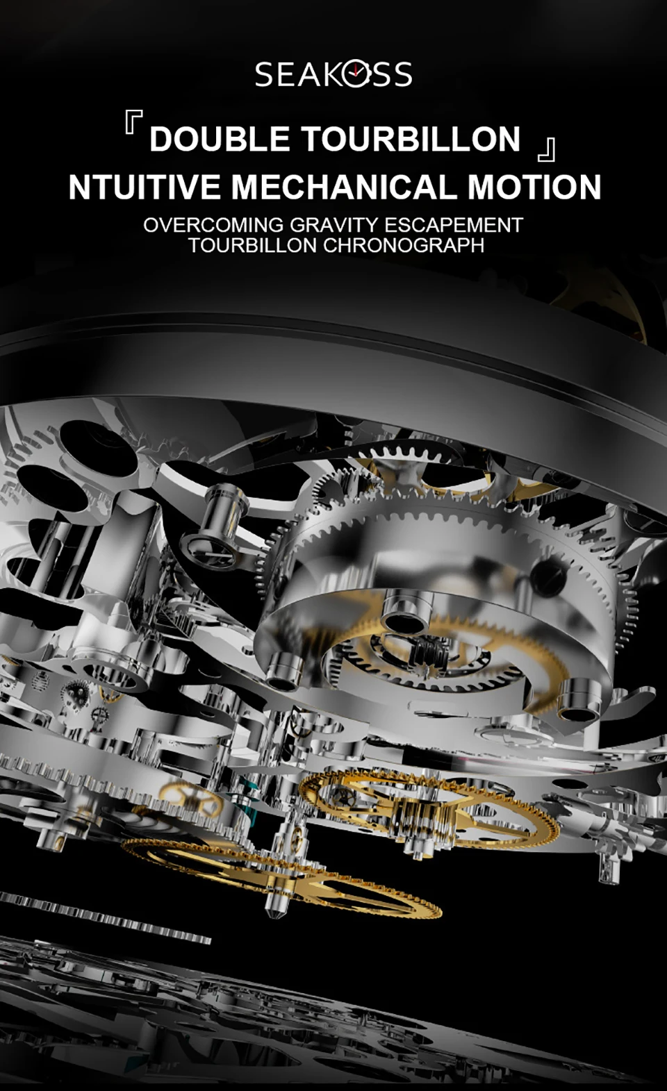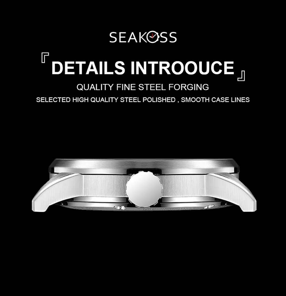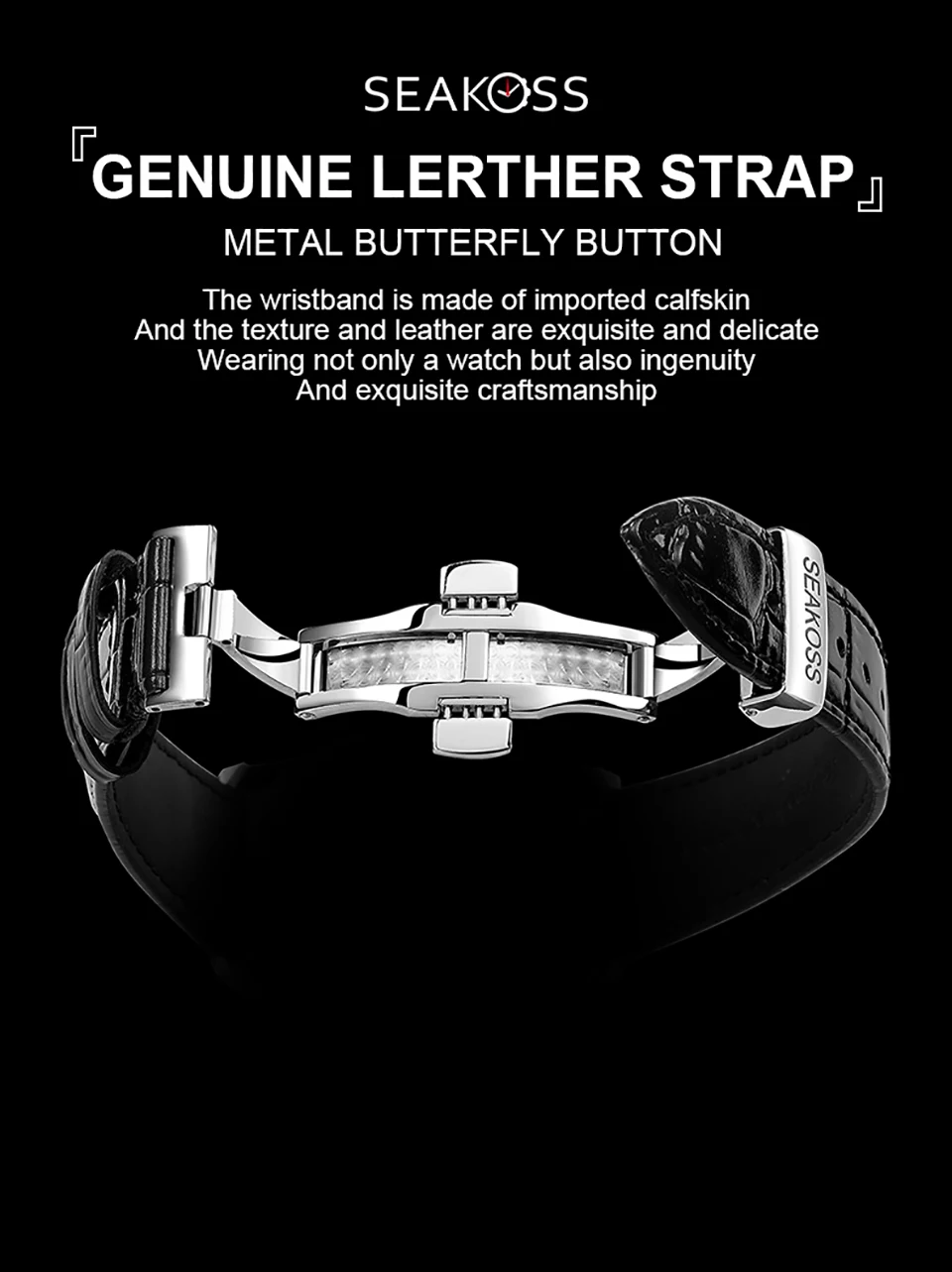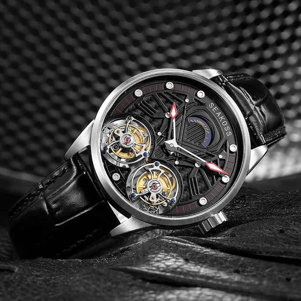 SEAKOSS Top Brand Double Tourbillon Men's Mechanical Watches- Hand Winding Movement Men`s Wristwatches with Sapphire Luminous Waterproof Lens. - White