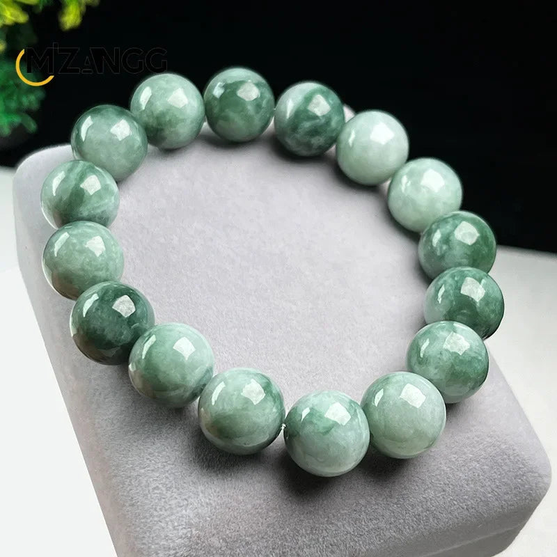Natural Myanmar Floating Green Flower Jadeite Round Beads String High-Grade Fashion Unisex Bracelet - Default Title