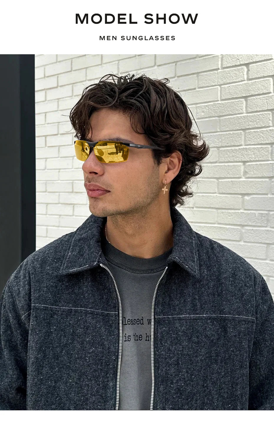 CAPONI Night Vision Men's Sunglasses Driving Sports Photochromic UV400 HD Sun Glasses Alloy Carbon Firber Protect Eyes BSYS8780 - Photochromic Brown / Night Vision