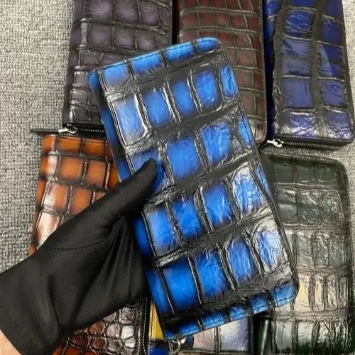 Teemzone Designer Luxury Crocodile Skin Men Long Wallets Leisure Genuine Leather Clutch Bag Lage Capacity Zipper Wallet 45 - royal blue