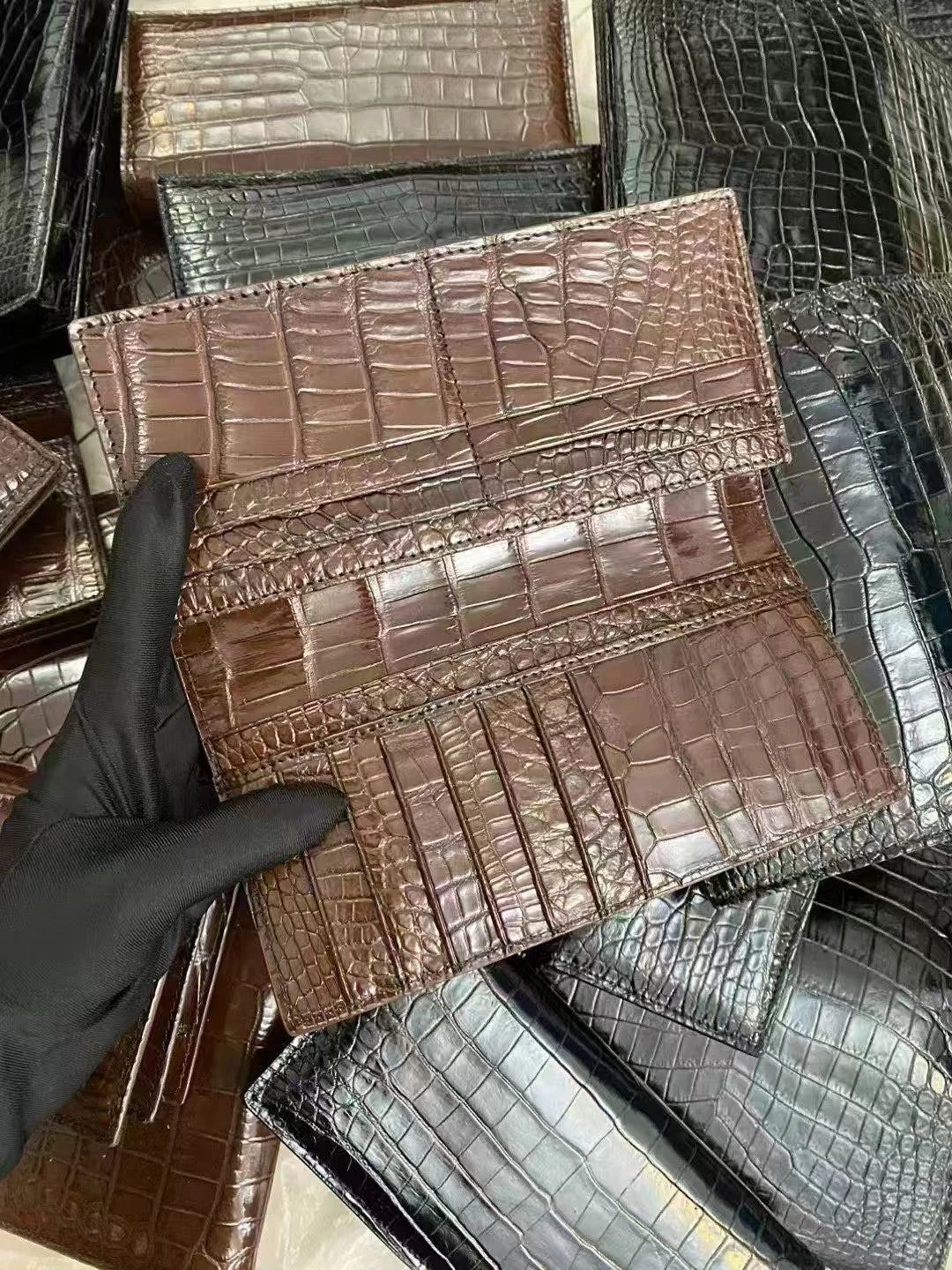 Teemzone Luxury Outside and Inside Crocodile Leather Business Men's Long Wallet -Fashion Genuine Leather Multi Card Slots Bag 45 - brown